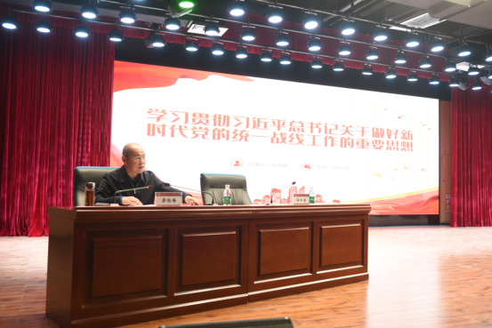 河南省委统战部副部长、一级巡视员梁险峰受邀作题为《深入学习贯彻习近平总书记关于做好新时代党的统一战线工作的重要思想》的专题报告。
