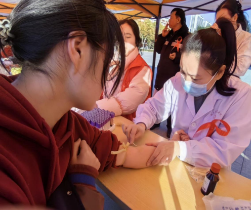 开幕式上,宋伟书记进行精彩致词,并提出了几点希望:一是希望同学们提高认识,增强责任感;二是希望同学们深入学习,广泛宣传;三是希望同学们养成健康生活好习惯,倡导文明风尚;四是希望同学们展现人文关怀,传递正能量。紧接着新乡市红十字会孙涛科书记讲话,他希望同学们一起行动起来,共同传播艾滋病防治知识,推动社会共治,终结艾滋,共享健康,为构建更健康、平等和包容的社会贡献力量,为“健康中国战略”做出我们的贡献。随后万博max体育官网入口纪委书记鲍晋选宣布活动开始,师生们一同在防艾抗艾宣传墙上签名,同学们现场放飞寄予希望的纸飞机。志愿者们为自愿检测的同学们进行艾滋病抗体检测,活动得到了在校学生的热情参与。健康科普区、防艾知识问答区和游戏区让学生在轻松有趣的氛围中学习防艾知识,帮助学生们正确认识艾滋病,提高防艾意识。防艾康复运动区带领参与学生体验太极拳、八段锦、五禽戏等中医传统功法,倡导健康生活方式,帮助同学们提升免疫力。防艾手工制作区自行进行手工书签DIY、制作红丝带,让同学们亲手制作防艾主题手工艺品,深入了解艾滋病的传播途径与预防措施。此次活动不仅丰富了大家的业余生活,还提高了防艾知识的知晓率,营造了良好的校园防艾氛围。