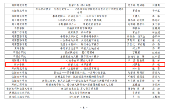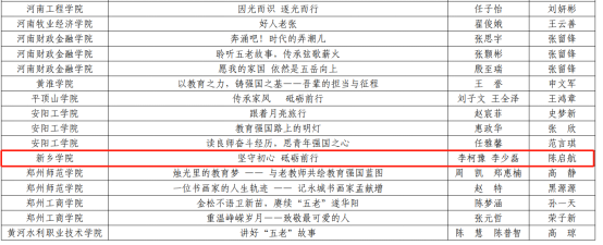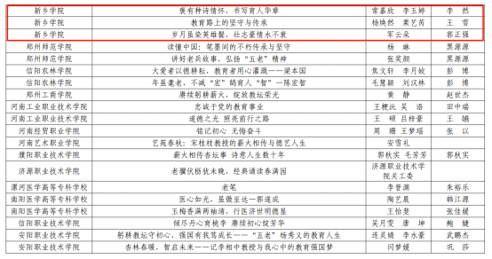 其中,征文类:刘梦鑫的《师者之光,永不落幕》获征文组特等奖;常嘉欣、李玉婷的《褒有种诗情怀,书写育人华章》,杨焕然、栗艺芮的《教育路上的坚守与传承》,军云朵的《岁月虽染英雄鬓,壮志豪情永不衰》获征文组一等奖;李柯豫、李少磊的《坚守初心砥砺前行》获征文组二等奖。微视频类:路琦、陈威帆、江秋月、王非凡的《点灯人照路人》荣获微视频组二等奖。