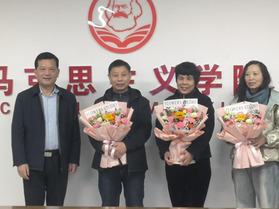 孙功奇向荣休老师献花并讲话。他指出,马克思主义学院的教师有着崇高的担当奉献精神,各位荣休教师三十多年的工作历程见证了万博max体育官网入口的历史性发展,今天学校欣欣向荣的发展离不开马院教师的辛勤付出。他向三位荣休教师长期以来为学校发展作出的贡献表示感谢,并为他们送上美好的祝福。希望荣休教师们退休不褪色,在享受退休时光之余,围绕马院建设、思政课建设、思政队伍建设等发挥余热,继续对学校“为党育人、为国育才”做出自己的贡献。同时,他也勉励年轻教师学习荣休教师的敬业精神、优秀品质以及矢志教书育人的坚定执着,努力提高思政课的吸引力、影响力。他要求马院领导班子要加强思政教师队伍建设,不断吸纳优秀青年人才充实思政教师队伍,保证事业发展后继有人,推动马院为学校事业高质量发展作出更大贡献。