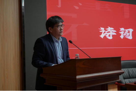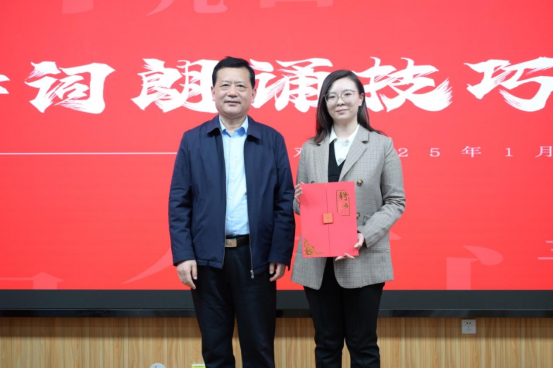 姚喜双、孔唯佳共同解读毛泽东诗词的当代价值。姚喜双以“声音中的党史——毛泽东诗词赏析朗诵”为主题,讲授了毛泽东诗词朗诵的技巧并进行示范诵读,同时从三个方面对毛泽东诗词的艺术风格进行了解读。全场教师沉浸于深刻的讲解与精彩的诵读所营造的“大气磅礴,自信豪迈”的毛泽东诗词境界中。