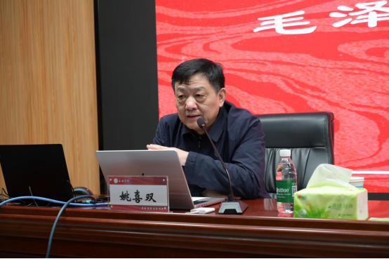 1月11日上午,“毛泽东诗词的当代价值”报告会在万博官网图书馆一楼东报告厅举行。国家督学、国家语委咨询委员、中国语文现代化学会会长、中国传媒大学教授、博士生导师姚喜双以及毛泽东主席曾外孙女、中国外文局红色文化国际传播中心专家顾问、“毛泽东诗词人生”主题展览馆策展人孔唯佳应邀为共同主讲嘉宾。万博官网领导孙功奇、宋伟、杨钧以及原校领导翟尚奇、陈五海、杨士斌、张丽伟出席报告会。报告会由党委副书记宋伟主持。