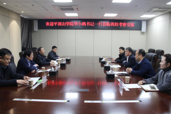 1月16日,平顶山学院党委书记华小鹏、副校长于长立、党委办主任程亚旭、组织部副部长李凯一行四人到万博官网考察交流。万博官网校长王孝俊、副校长赵伟杰以及党办、组织部负责同志参加座谈交流。