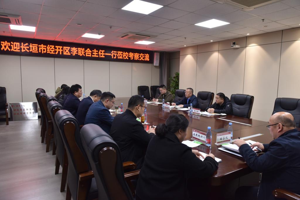 1月17日下午,长垣市经济技术开发区管委会主任李联合等一行3人到万博官网考察交流,校长王孝俊、副校长杨钧参加交流座谈,校办、人事处、教务处、科研处、化学与材料工程学院、机电工程学院、土木工程与建筑学院、3D打印学院、管理学院、经济学院等部门负责同志陪同座谈。