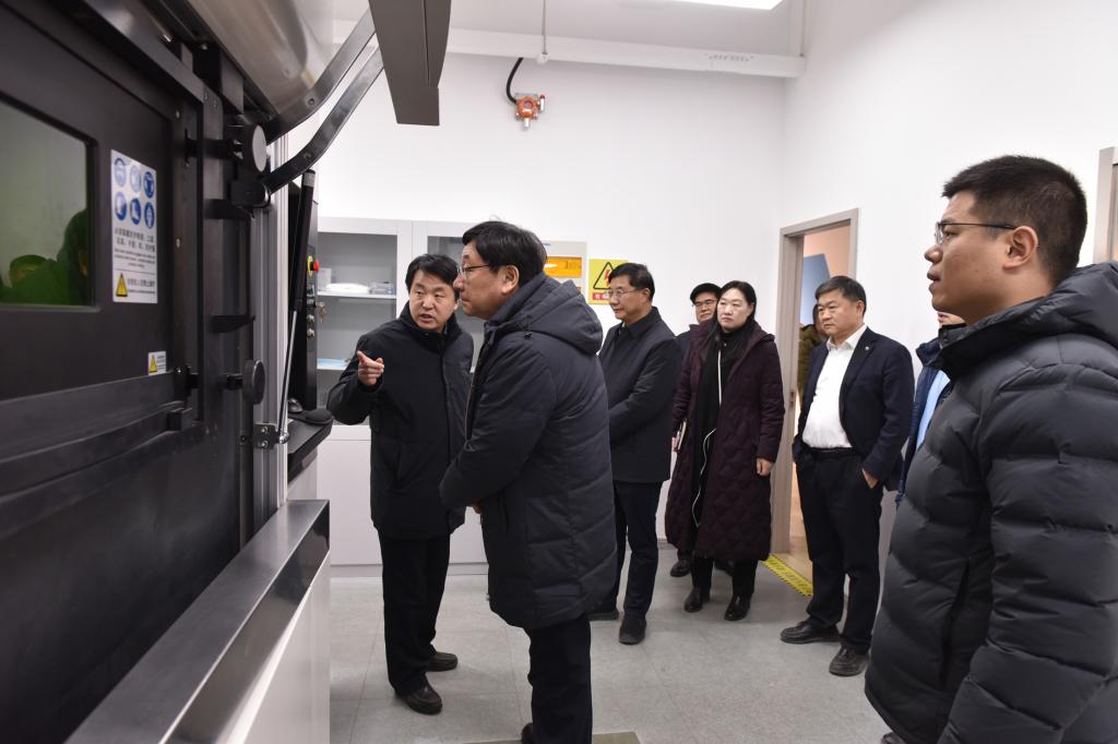 朱自锋一行先后参观了3D打印学院、3D打印产业园,认真听取了工作人员的汇报,与工作人员亲切交流,详细了解了3D打印学院的科研成果、人才培养模式以及服务地方的实践探索。
