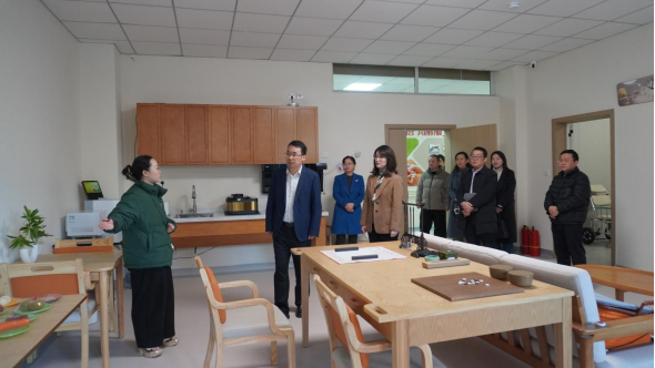 张银堂一行首先实地考察了智慧康养协同创新中心、护理学实验教学中心和助产专业实训中心,详细了解实验室功能布局及设备运行情况。张翊、张金华重点介绍了基础护理、健康评估等实验室的智能化教学模型,以及智慧康养协同创新中心在“社区—居家—机构”一体化服务中的实践应用。