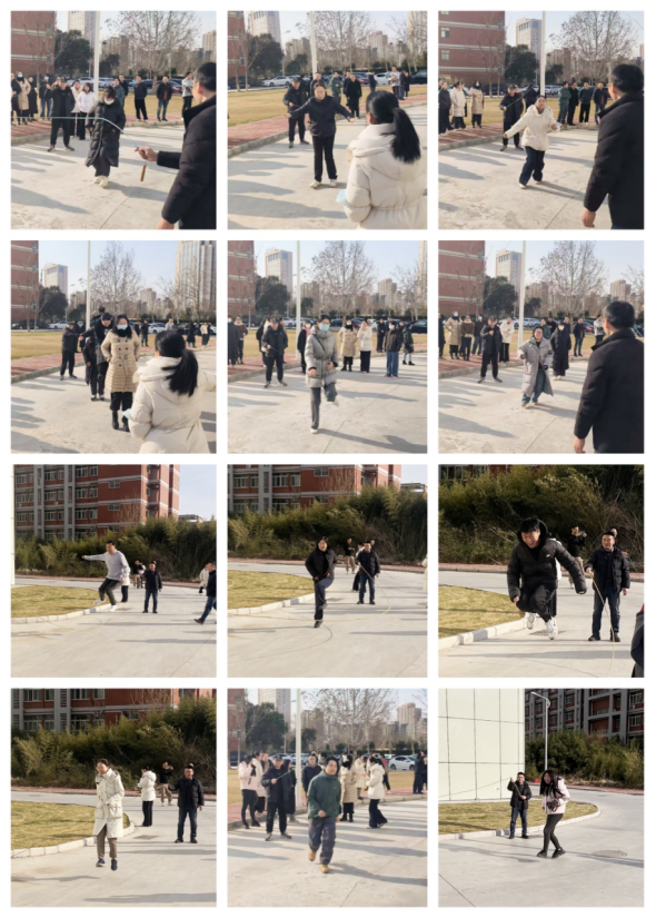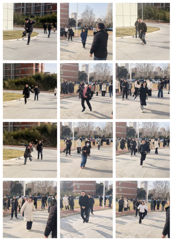 此次活动得到学院女教职工的积极响应,也吸引了众多男教职工的踊跃参与。活动现场气氛热烈,教职工们热情高涨。活动开始前,学院分工会主席带领教职工们进行了充分热身。热身结束后,跳绳活动正式开始。本次活动设置了“单人跳大绳”和“集体跳长绳”项目,既考验个人的跳绳技巧,又考验团队的协作能力。活动中,女教职工们身姿矫健、步伐轻盈,赢得阵阵喝彩,男教职工们跃跃欲试,虽然偶有失误,但仍然相互加油鼓劲,现场加油声、欢笑声此起彼伏。活动在一片温馨、欢快的氛围中圆满结束。