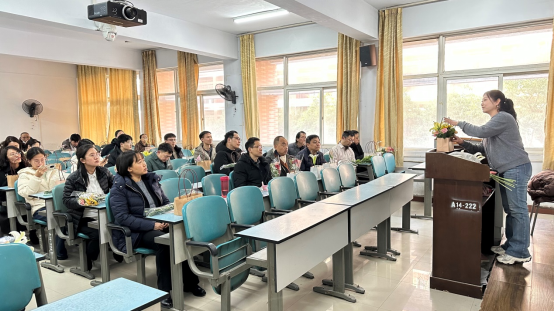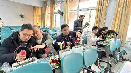 为庆祝第115个国际劳动妇女节,3月4日下午,计算机与信息工程学院分工会在A14-223开展“花艺润生活,巧手绽新彩”三八妇女节主题插花活动。学院全体工会会员参加活动,活动由院党委副书记郭桂花主持,并邀请专业花艺老师进行现场教学指导。