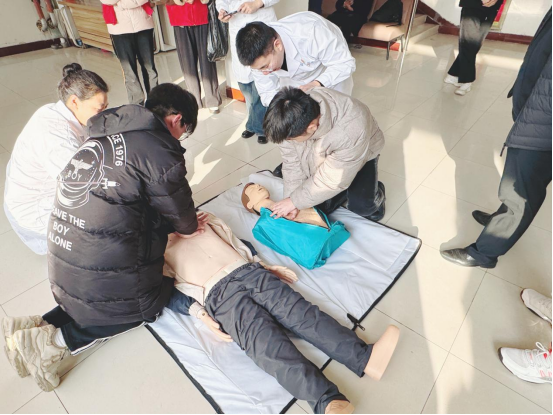 三附院机关二总支三支部书记、公共卫生科主任王蕾介绍了预防传染性疾病的重要性,系统讲解HPV感染与艾滋病防护知识,倡导科学健康的生活方式。临床医技一总支六支部书记、院感科主任李长安以《认识乙肝》为题,结合临床案例,讲解病毒性肝炎传播途径及预防措施。机关二总支二支部书记、护理部主任刘慧杰通过模拟演示心肺复苏术,强调“黄金4分钟”急救的重要性。讲座内容涵盖理论解析、实操指导以及现场答题,讲座现场氛围热烈,互动频繁。会后师生积极参与了急救模拟演练、乙肝丙肝抗体的筛查与健康咨询服务。