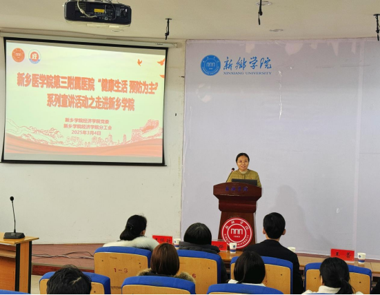 陈卓代表经济学院党委对三附院临床医技党总支及机关党总支医护人员的到来表示热烈欢迎。向现场师生介绍了举办此次健康讲座活动的背景和目的,强调要重视传染性疾病的防控意识,提高预防措施,降低患病风险。
