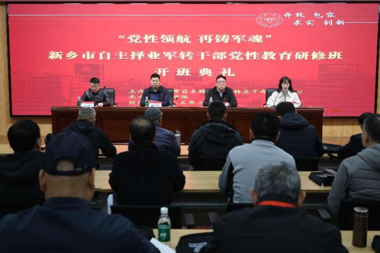 为深入学习贯彻党的二十届三中全会精神,强化自主择业军队转业干部的党性修养与使命担当,3月18日上午,“党性领航 再铸军魂”新乡市自主择业军转干部党性教育研修班在万博官网隆重开班。新乡市退役军人事务局副局长赵虎山、自主择业军队转业干部服务中心主任郭强、万博max体育官网入口继续教育学院院长田大治、副院长田贝贝出席开班典礼。