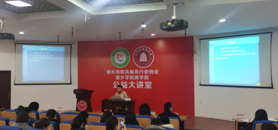 3月18日下午,商学院联合新乡市财务服务行业协会在万博官网A05报告厅举办公益大讲堂,邀请注册会计师、注册税务师、高级咨询师王国娜作题为《税务筹划技巧与风险防控方法》的交流与分享。来自新乡市各企业的财务、税务人员及商学院师生代表200余人参加了此次活动。商学院院长周斌、副院长李晓红、新乡市财务服务行业协会会长王艳、秘书长李媛出席活动,由协会理事樊保锋主持。