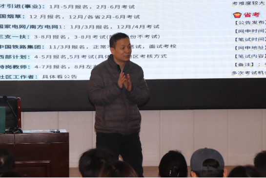 大会伊始,河南师范大学政治与公共管理学院教师陈灿博士结合艺术类岗位招录趋势,带来了考公相关的精彩内容。陈灿深入分析当前就业形势,对国考政策进行细致解读,从备考策略到笔试面试技巧,都进行了全面且详细的讲述。陈灿指出,随着就业市场竞争日益激烈,了解政策动态、掌握科学备考方法是艺术类学生考公成功的关键。他通过列举大量实际案例,为学生提供最实用的指导。让同学们对考公流程和要点有了更为直观的认识。