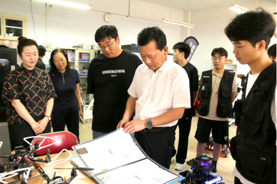 在学生社团Robomaster机器人协会,孙功奇与社团成员和指导老师亲切交流,详细了解了社团的创办历史、社团成员组成情况、特色活动及取得的成绩。孙功奇指出,学院要重视和支持学生社团工作,一是要强化思想引领,把握正确方向,以党团组织优势引领学生社团健康发展,发挥更大作用,结合开展主题教育,深入学生社团,大兴调查研究,积极主动为社团发展创造有利条件。二是要注重创新意识和创新精神培养,努力拓展学生自主开展科学研究的新路径,引导学生满怀兴趣地对待学习和研究,不断提高学生社团作品的科学化、智能化水平。三是要把学生社团建设与人才培养有机融合,用社团的实践来检验课堂的学习,使理论学习与实践活动有机衔接,相互促进,知行合一,激发学生的学习热情,有效提高人才培养质量。