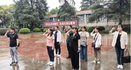 在鄂豫皖苏区首府烈士陵园,在英烈广场,面对鲜红的党旗,田涛书记带领大家重温入党誓词,感悟誓词中蕴含的革命精神,坚定了共产主义理想信念的信心和决心。园内陈列和珍藏着珍贵烈士遗物4500余件,安葬着近百位著名烈士和红军首长遗骨,纪念着鄂豫皖苏区13万多名革命烈士,集中反映了鄂豫皖苏区人民在党的领导下,从大革命时期到新中国成立的漫长岁月中所走过的光辉历程和建立的丰功伟绩。