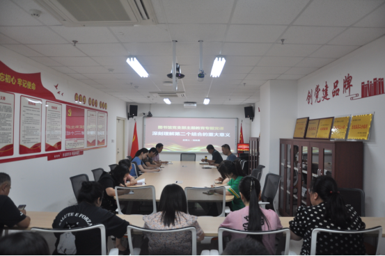6月27日下午,图书馆党支部学习贯彻习近平新时代中国特色社会主义思想主题教育第二次专题党课在602党建活动室举行。全体党员参加了学习。党支部书记陈国胜主持了会议。