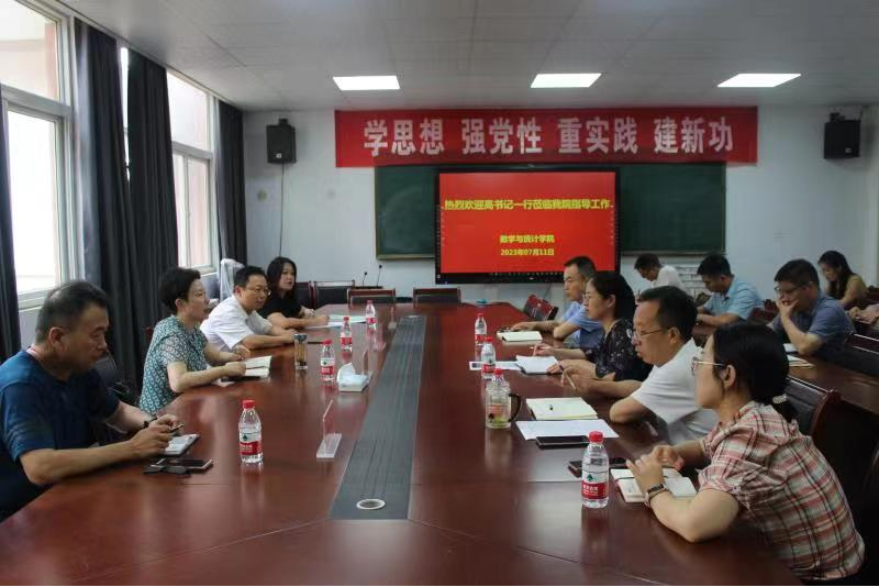 7月11日下午,党委副书记高炜一行来到数学与统计学院开展调查研究并进行了座谈。党委宣传部部长苏辉、工会副主席魏祖志、宣传部意识形态科科长徐甜陪同考察。数学与统计学院全体班子成员和部分教师代表参与该次活动。